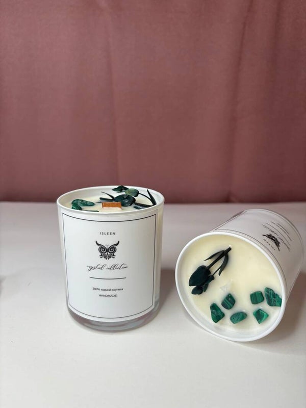 Gebruiksaanwijzing: Verwijder de kristallen voordat je de kaars gebruikt en maak ze schoon met warm water. Mocht je ze er moeilijk af krijgen, steek de kaars dan zo'n 15 min aan, maak hem uit en verwijder dan de kristallen. Daarna kan je de kaars weer gebruiken.